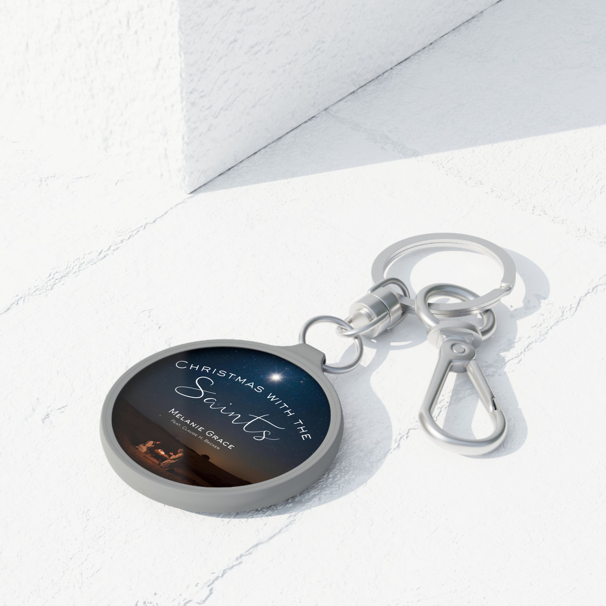 Christmas With the Saints Round Keyring Tag — Nativity Holiday Keychain Gift