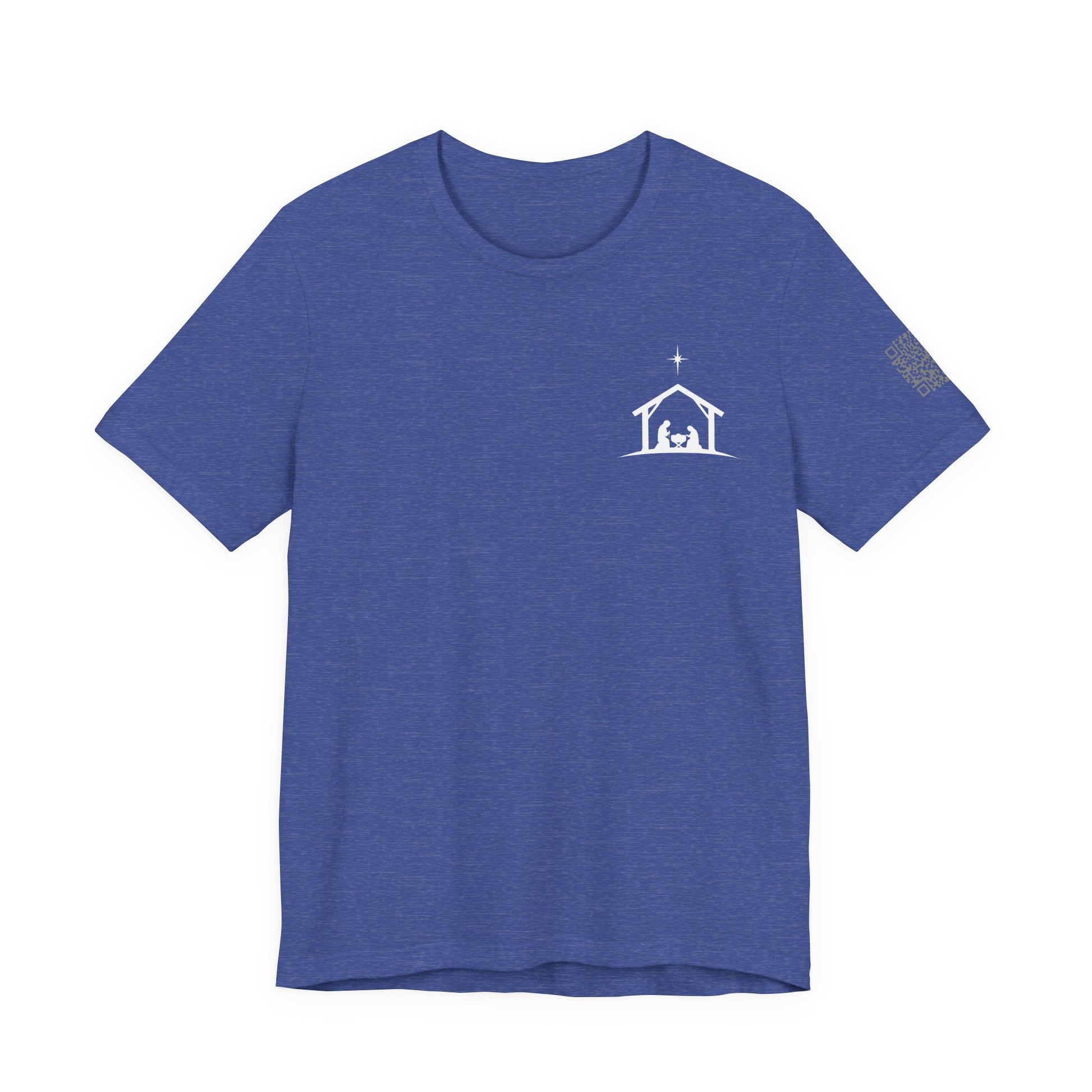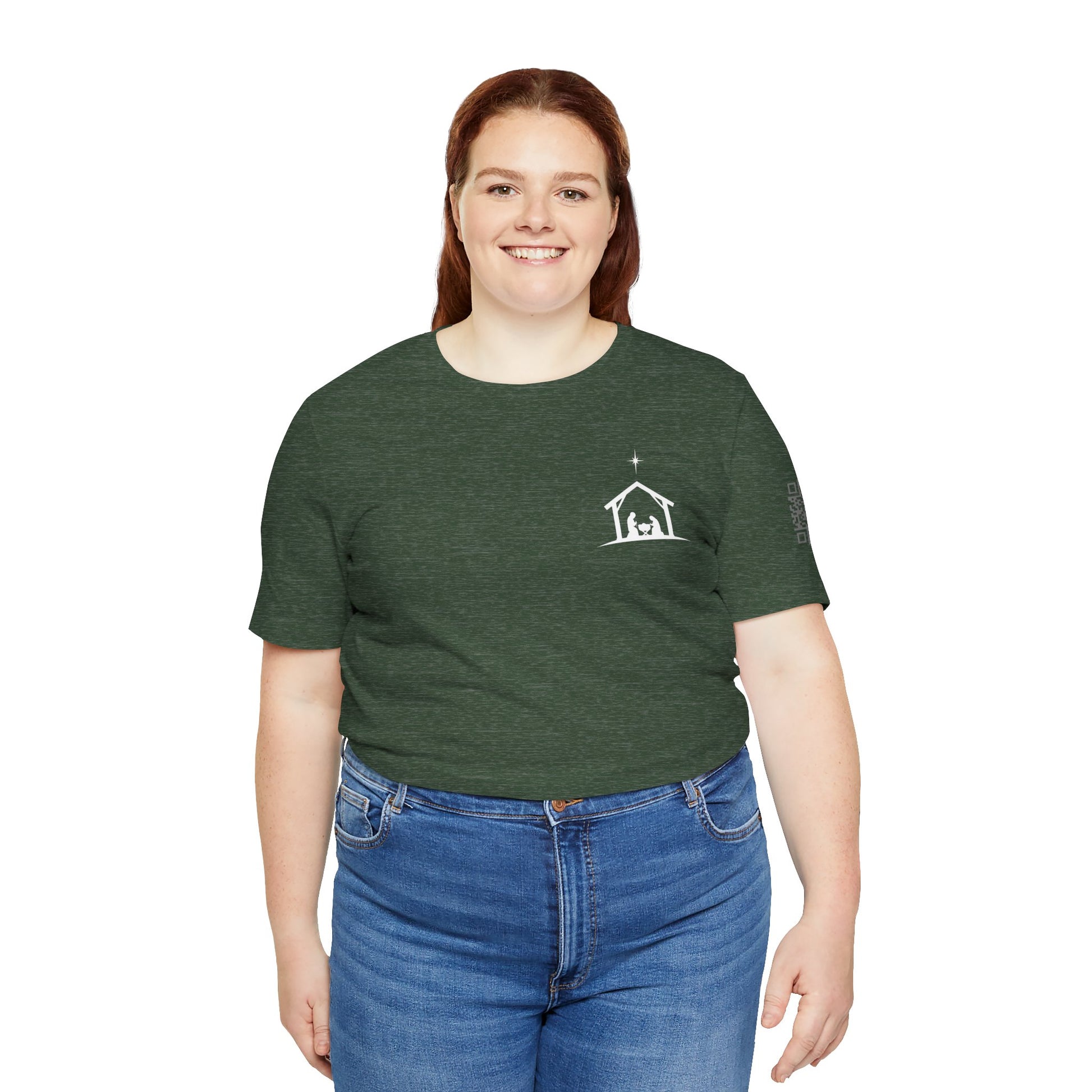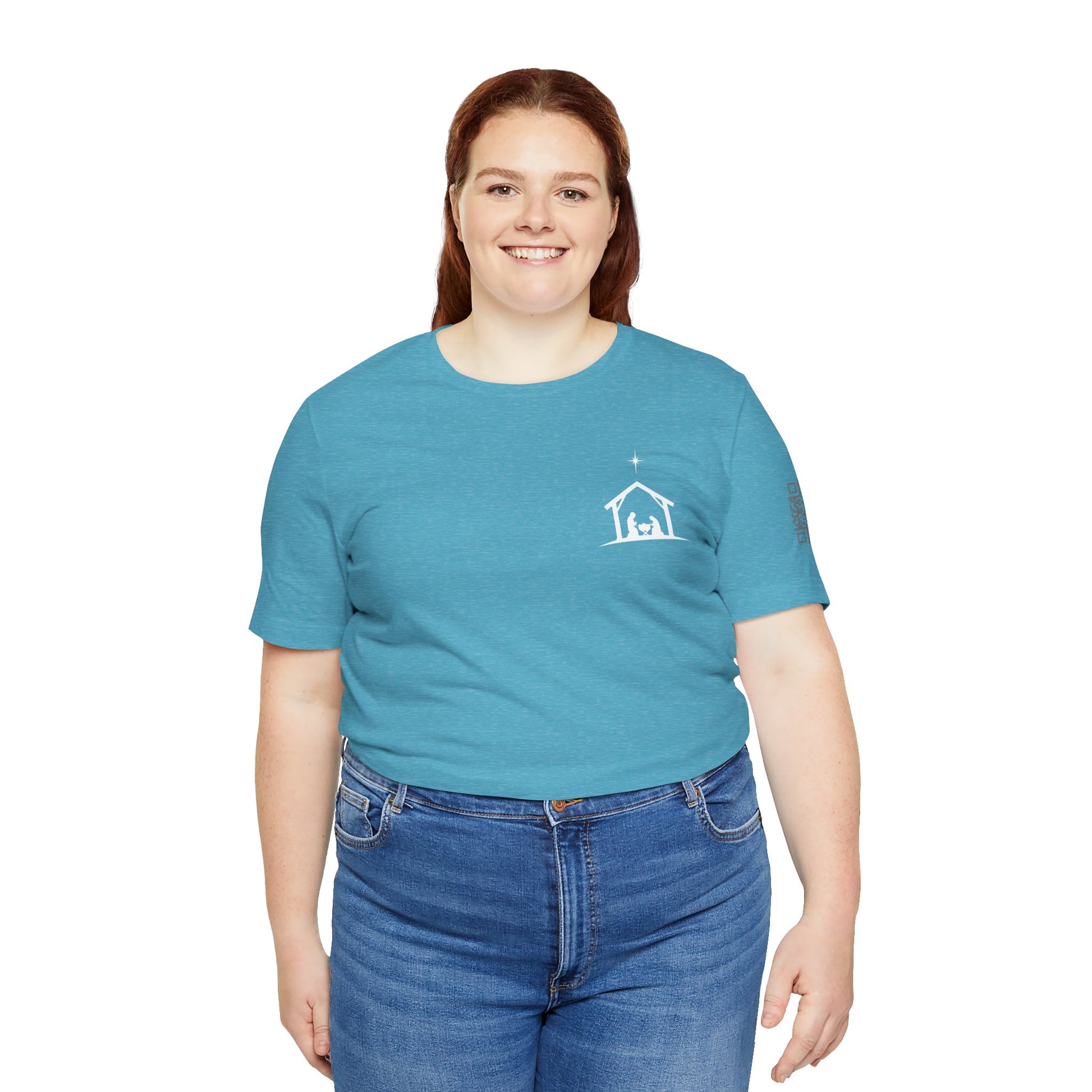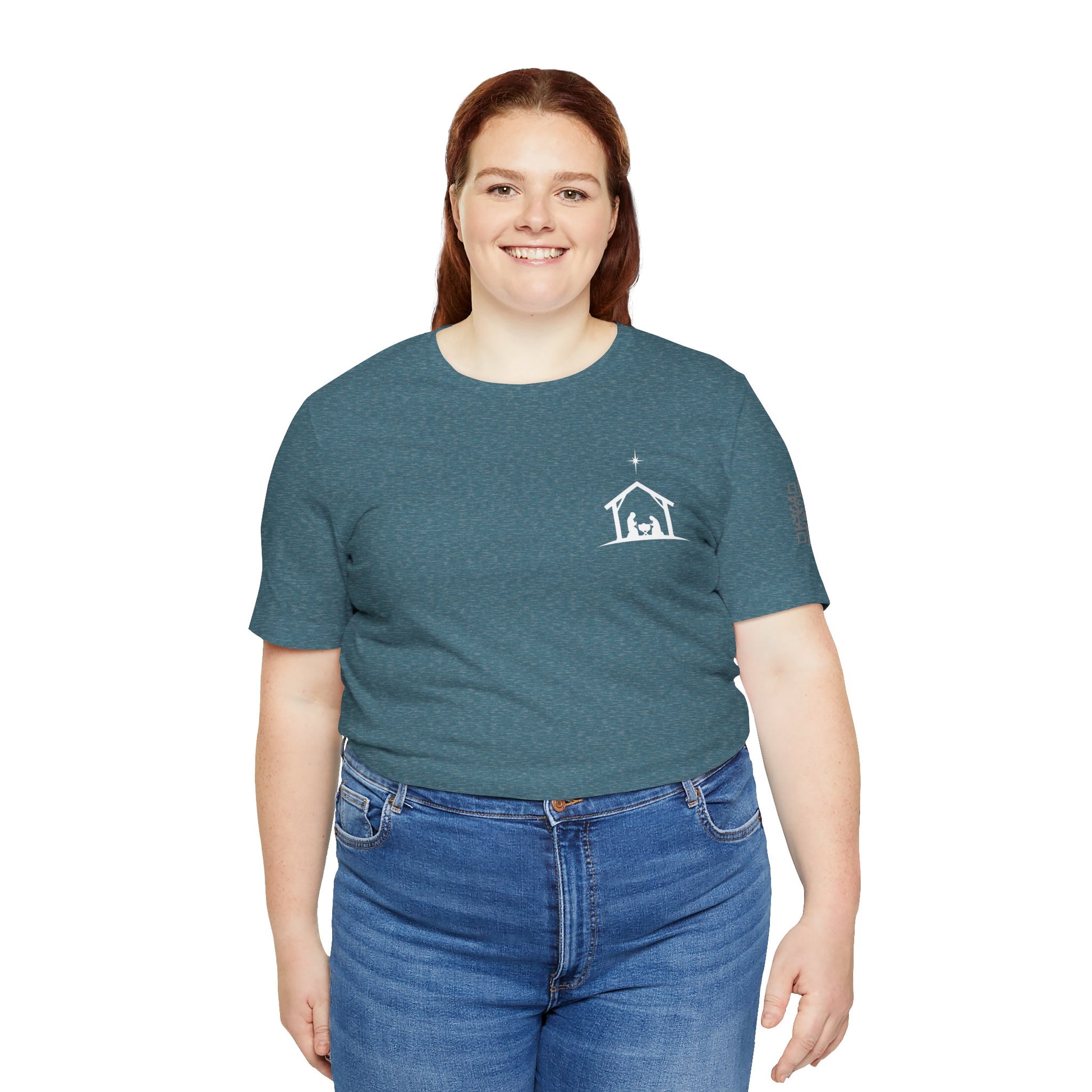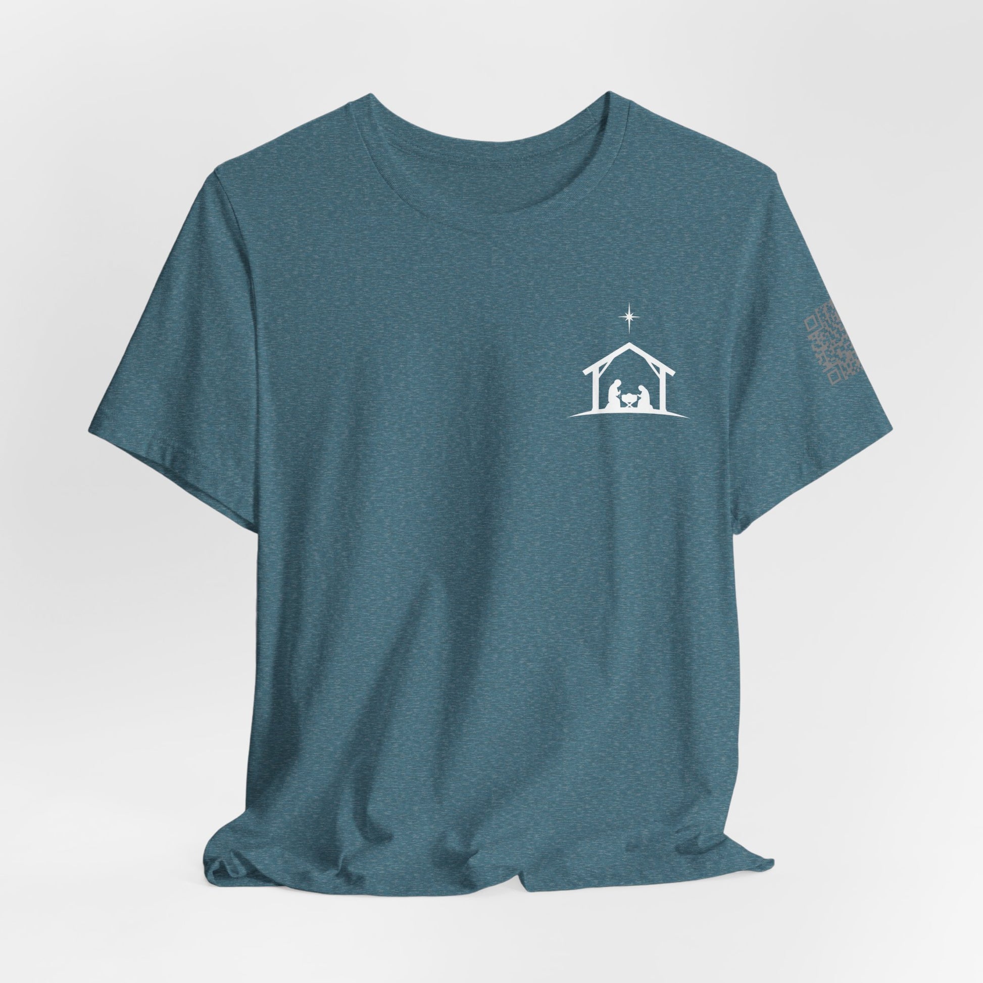 A soft, breathable tee that quietly carries a seasonal message: a small nativity chest on the front and a simple back proclamation, “STILL EMMANUEL — God With Us.” The lightweight Bella+Canvas fabric drapes gently and layers well, so this shirt moves from Sunday morning gatherings to cozy evenings around the table. Subtle sleeve and neck printing keep the look clean while adding thoughtful detail. Wear it when you want to reflect, gather, or share a calm reminder of presence and hope.