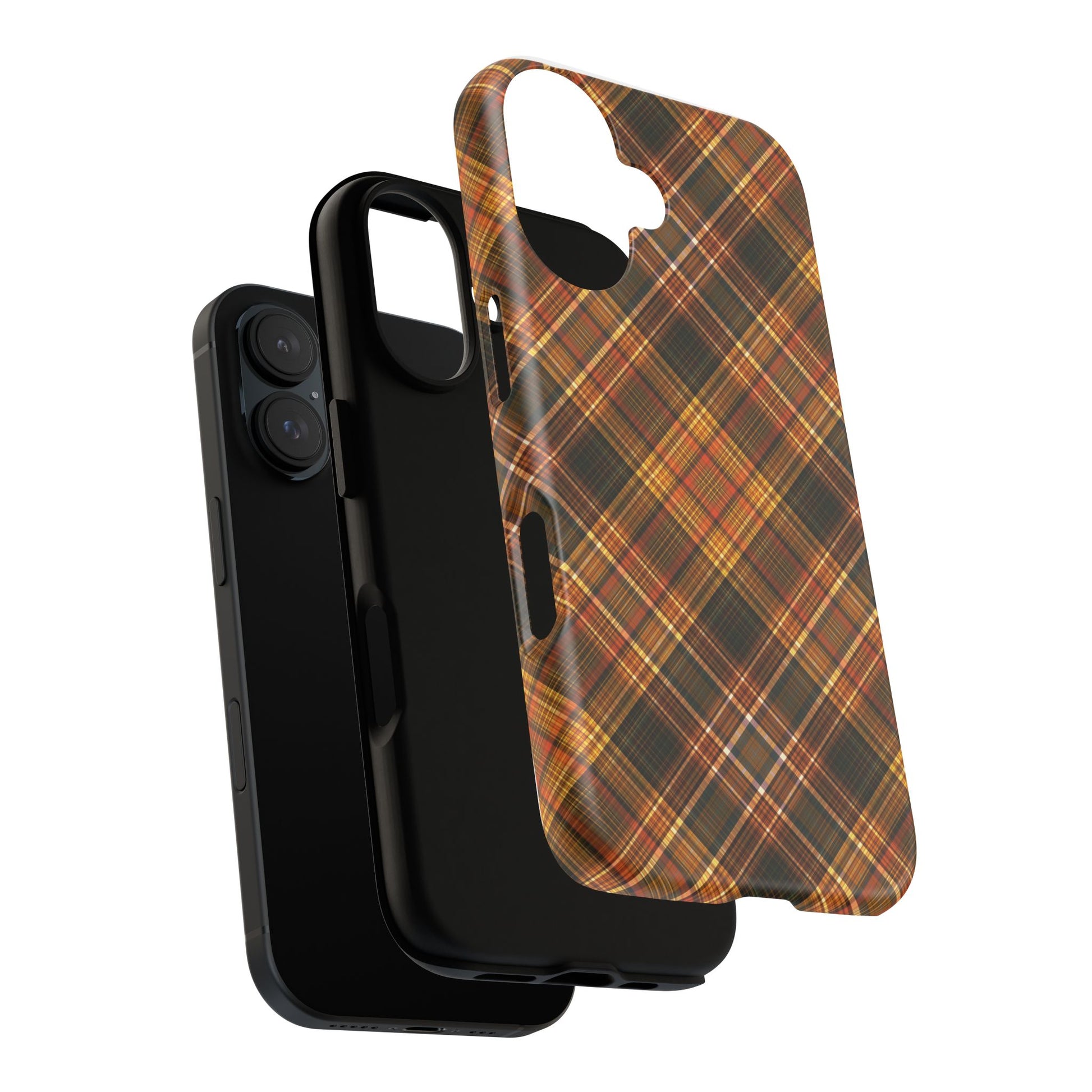 Thanksgiving Plaid Tough Phone Case — Rustic Brown Tartan Protective Cover